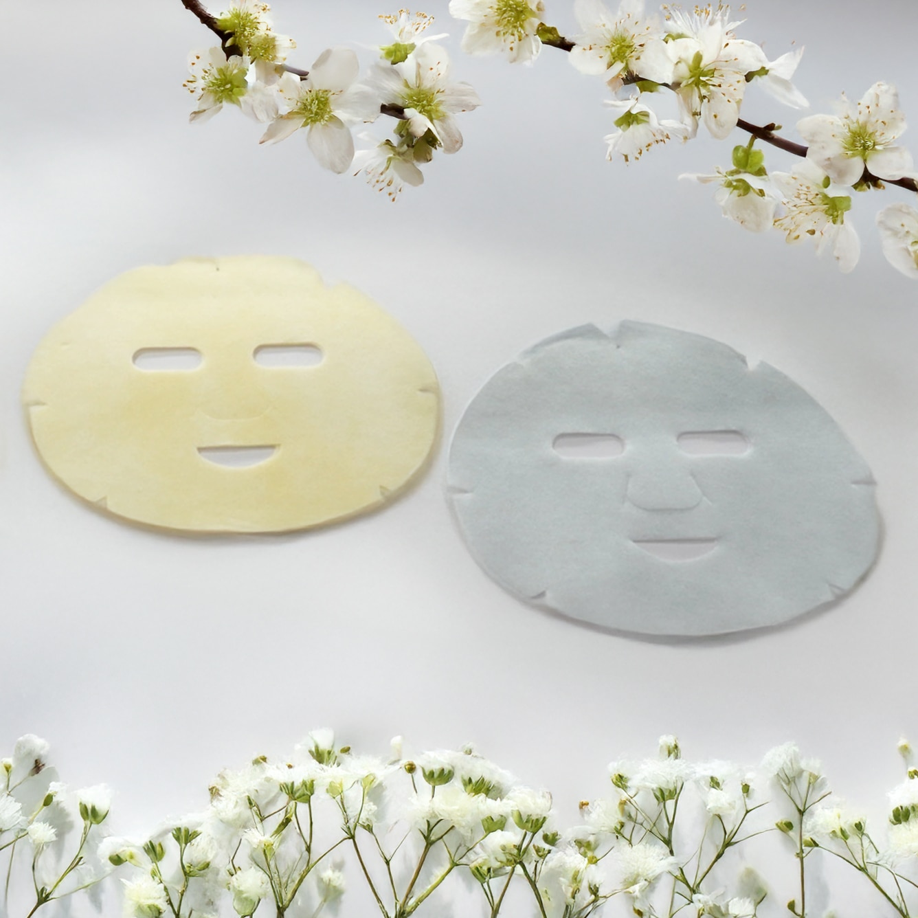 フェイスマスクや部分用シートマスクの基布として使用する場合、柑橘系の美容液と組み合わせると視覚的な統一感を演出できます。鮮やかなビタミンカラーで、使用時に明るい印象を与えるデザイン性を持たせています。